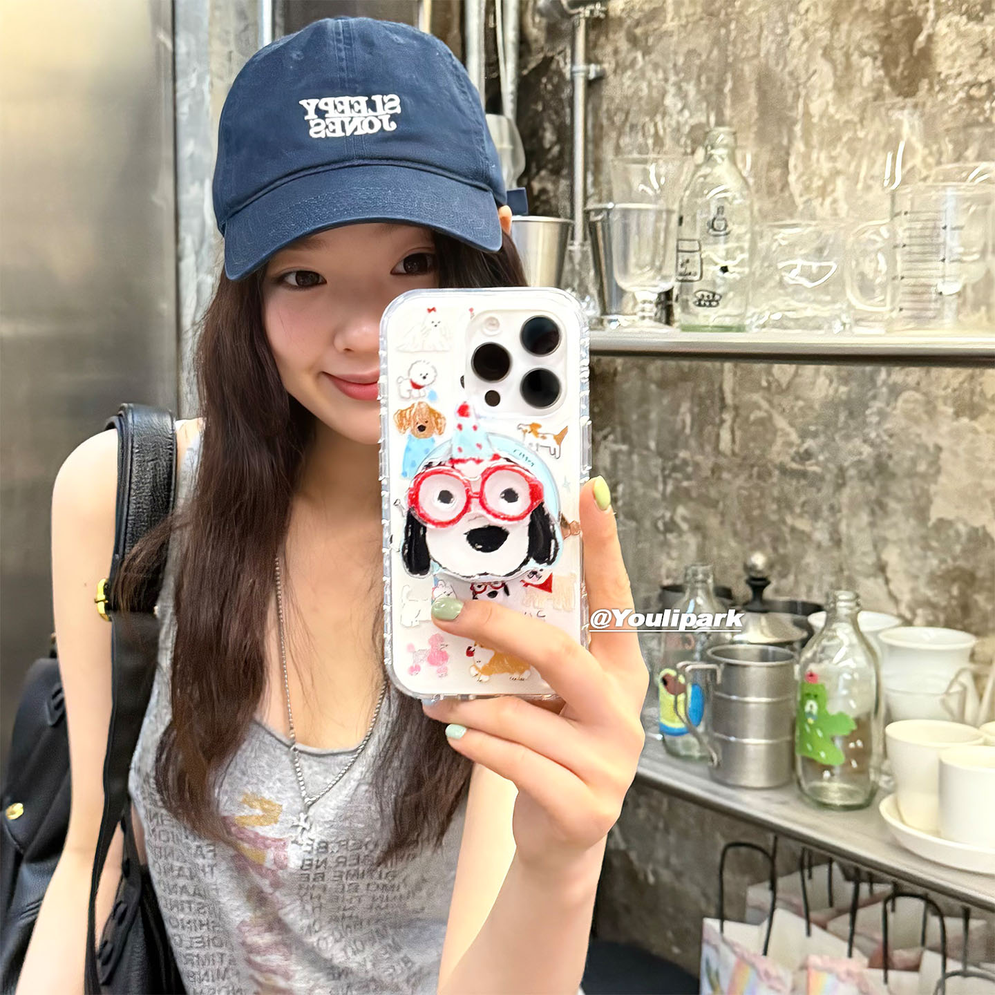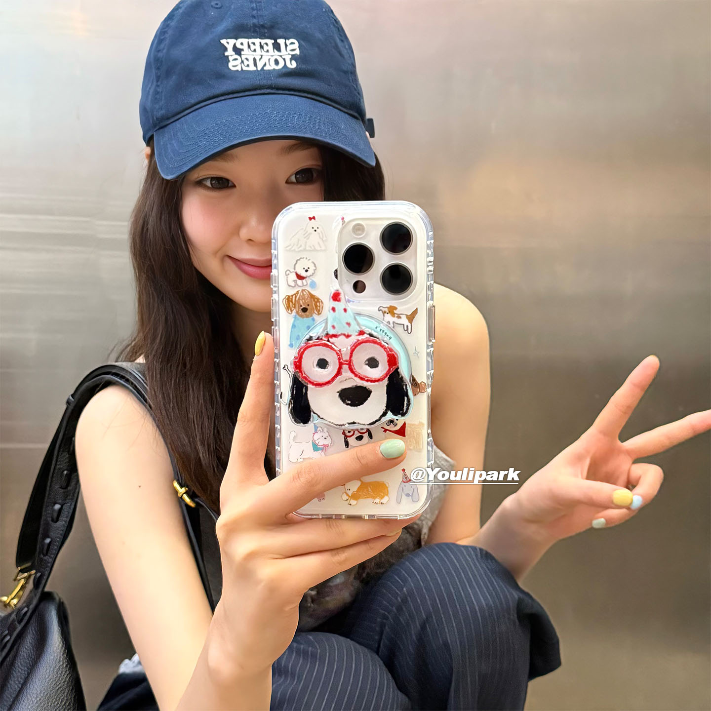 由里公园ins可爱涂鸦眼镜小狗磁吸支架15适用17pro苹果17ProMax手机壳iPhone16全包17新款14Promax保护套13女