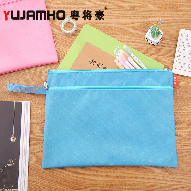 文件袋A4帆布拉链袋手提袋女大容量学生试卷袋双层大号防水产检孕检袋布料加厚足球网格袋资料袋科目袋文具袋