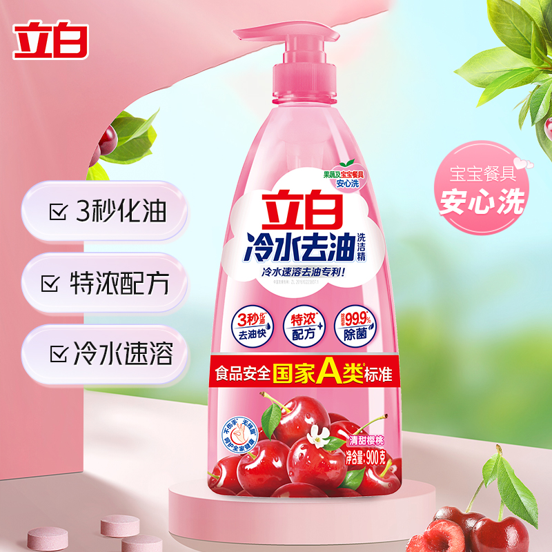 立白冷水去油洗洁精除菌祛味去油快果蔬可洗家用厨房按压洗碗液