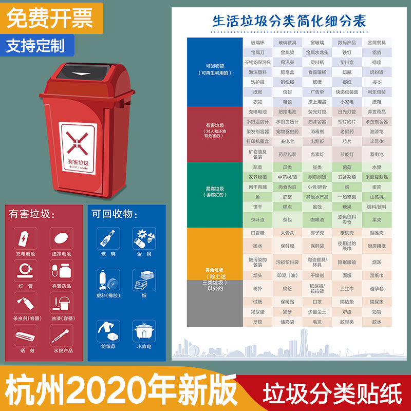 杭州市新版2020年实施生活垃圾分类标识贴 易腐垃圾有害垃圾可回收物其他垃圾 指示牌 分类标语标识宣传贴纸