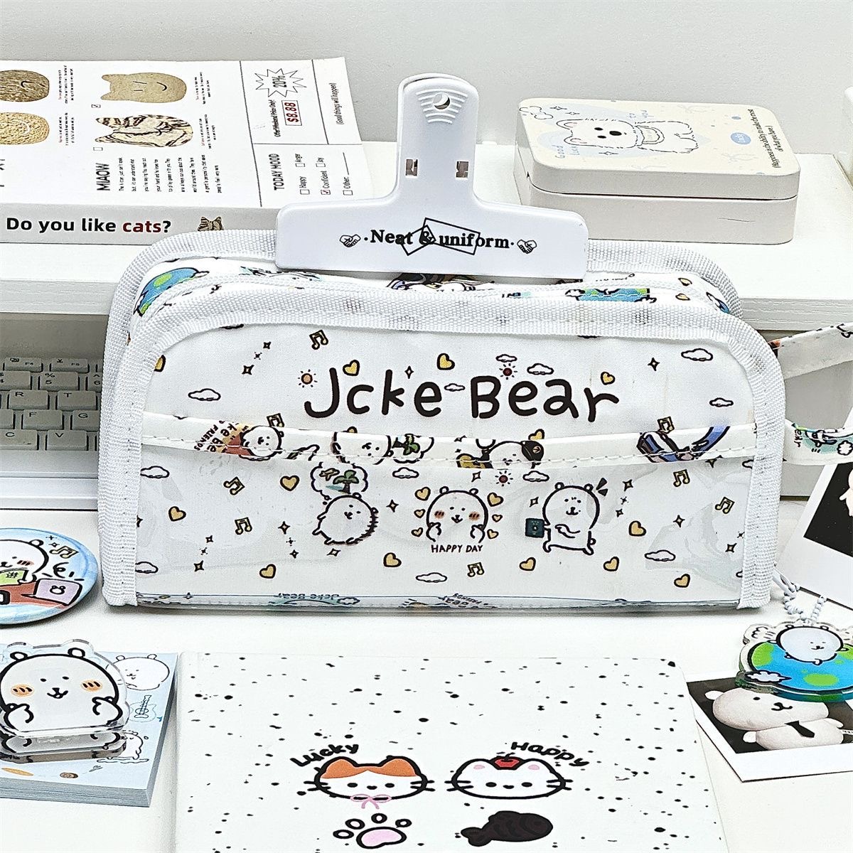 可爱卡通自嘲熊笔袋高颜值大容量印花痛包学生小众不撞款文具盒
