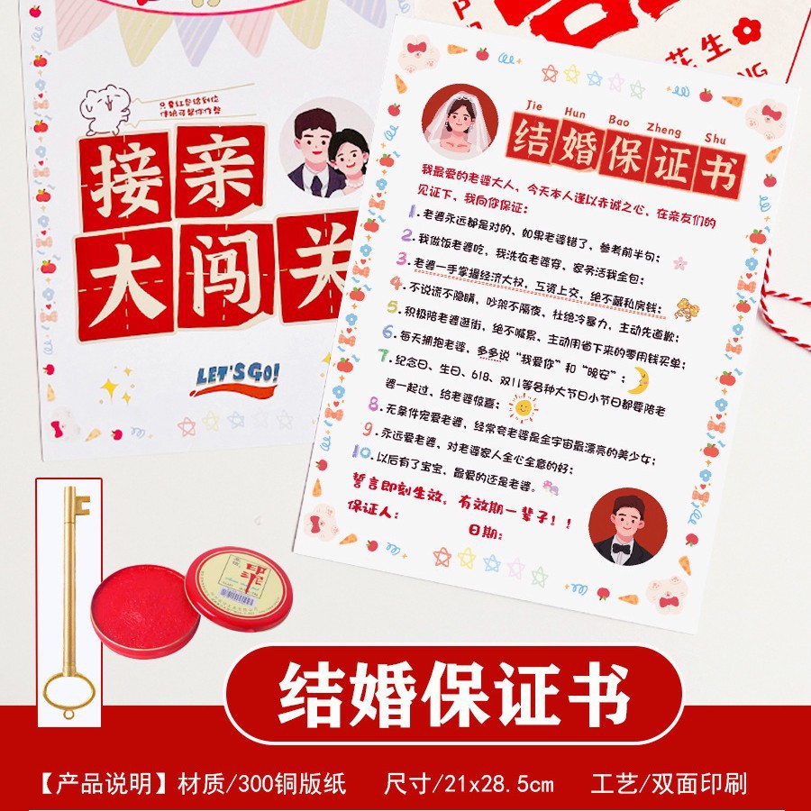 接亲游戏结婚小道具搞笑拦门堵门晨袍拍照保证书婚礼接亲堵门道具