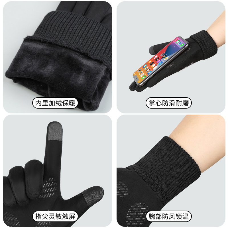 新款冬季保暖手套加绒加厚防寒触屏骑行开车户外运动德绒棉手套