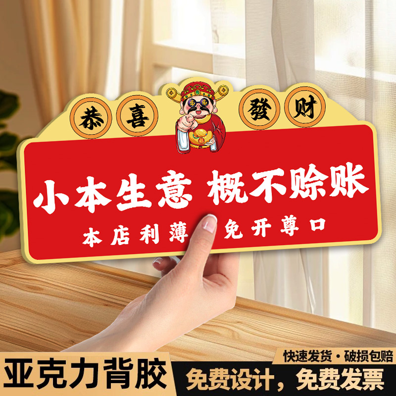 小本生意概不赊账温馨提示牌小本经营本店不赊账免开尊口标语利薄明码标价谢绝还价提示牌烟酒离柜墙贴纸创意