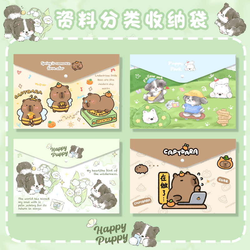 卡通可爱边牧西高地A4文件袋学生款试卷收纳科目分类文件夹按扣款