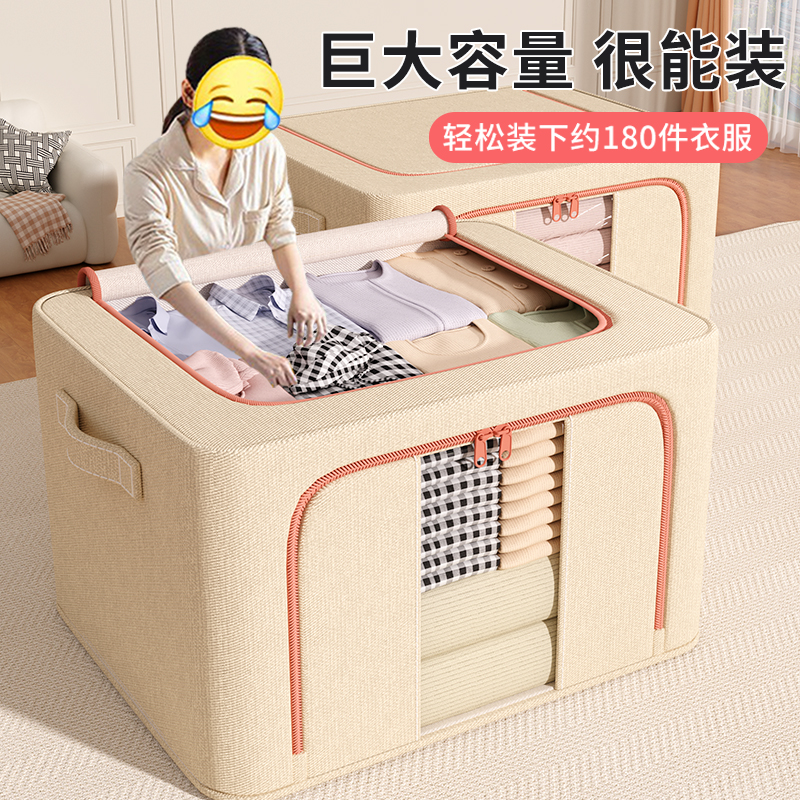 2个装衣服收纳箱棉麻布艺整理换季新神器折叠衣物整理箱被子百纳