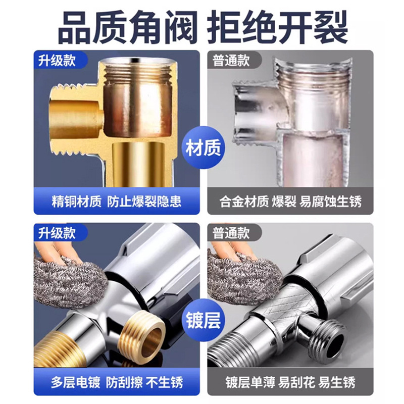 角阀镀层铜合金 4分角阀冷热黄铜体热水器不锈钢一进二出角阀球阀