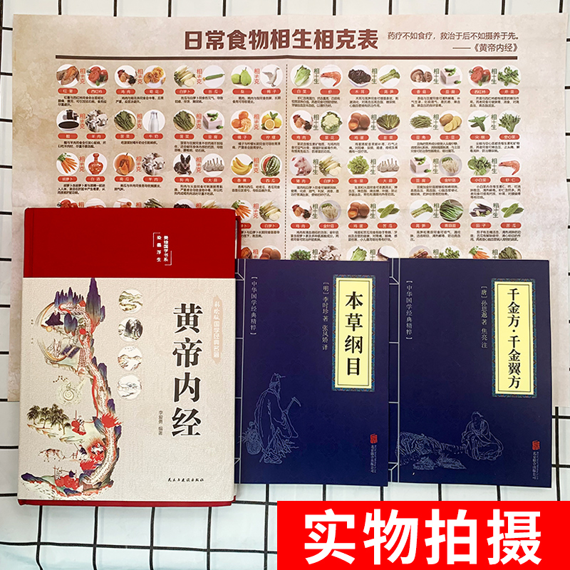 【精装彩绘】3册黄帝内经+本草纲目+千金方千金翼方 李爱勇民主与建设出版社全集注译白话版 中医基础理论医学汤头歌图解书籍ZY