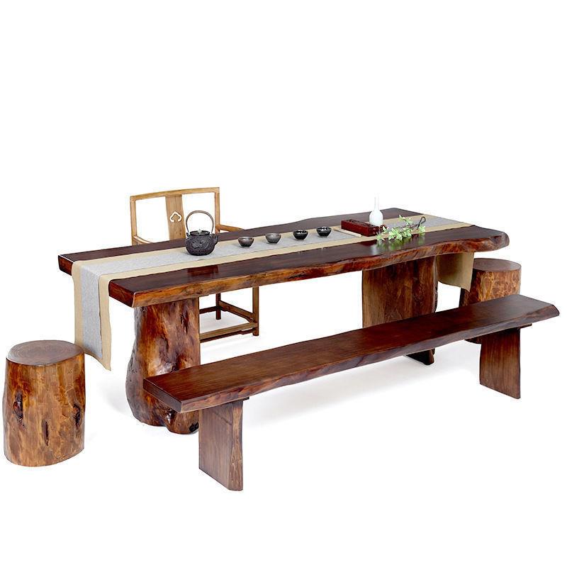实泡桌椅组合夫新中式功禅意茶台原木茶YS-109大板桌整板复古木客