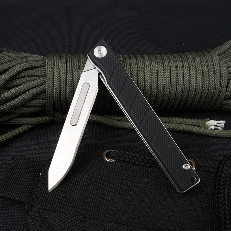 可替换碳钢刀片折叠美工刀带皮套G10刀柄随身包裹拆快递开箱刀具