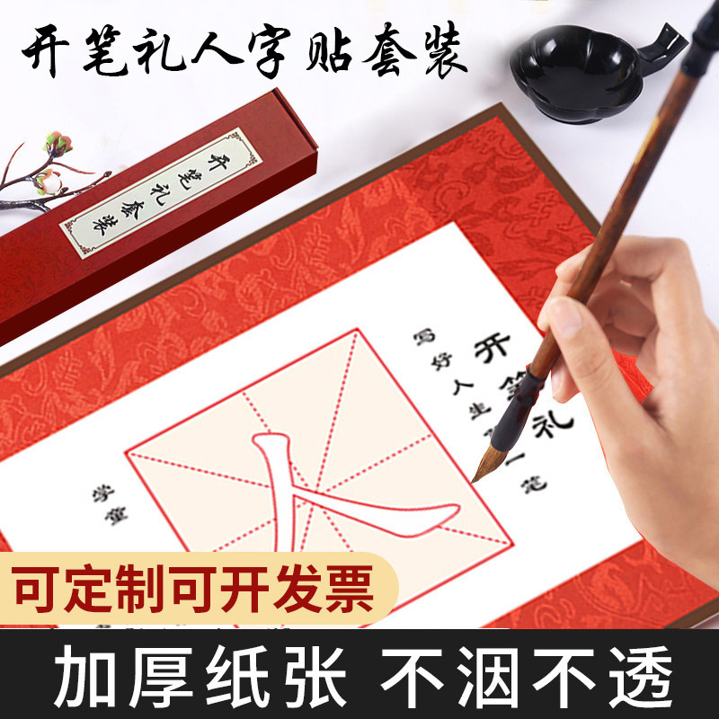 开笔礼人字帖幼儿园证书一年级套装小学生国学启蒙儿童人字字贴开学描红写人字卷轴朱砂启智毕业仪式毛笔宣纸