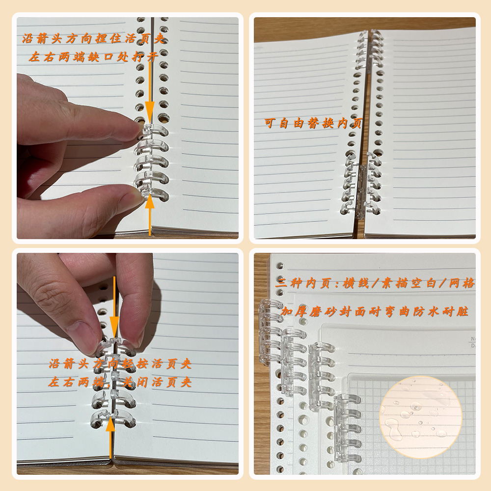 晨光活页本B5横线笔记本子A4方格网格记录本A5多规格可拆卸替芯软壳考研线圈错题本加厚纸张不咯手活页夹高中