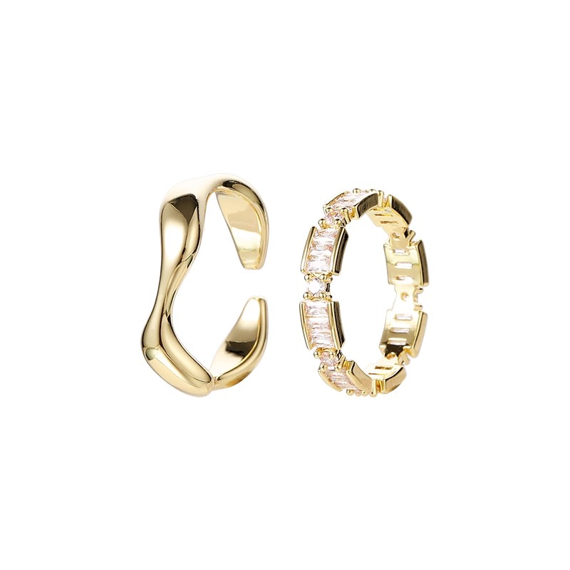 两件套轻奢金色戒指女款小众设计高级感食指女生指环开口对戒情侣