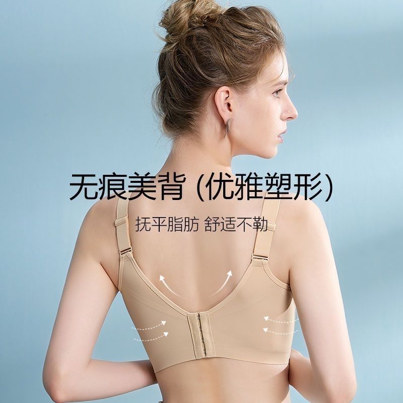 洋奢无钢圈薄款内衣大小胸聚拢收副乳防下垂无痕运动美背防震文胸