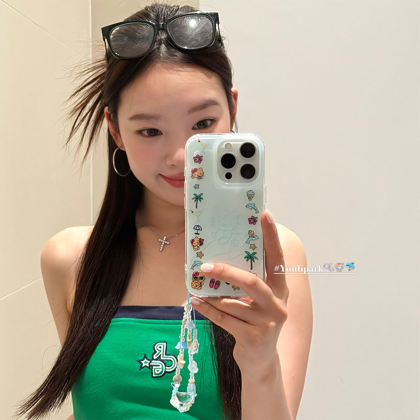 由里公园ins夏日清新少女海豚猫咪挂链15适用17pro苹果17ProMax手机壳iPhone16全包17新款14Promax保护套13韩