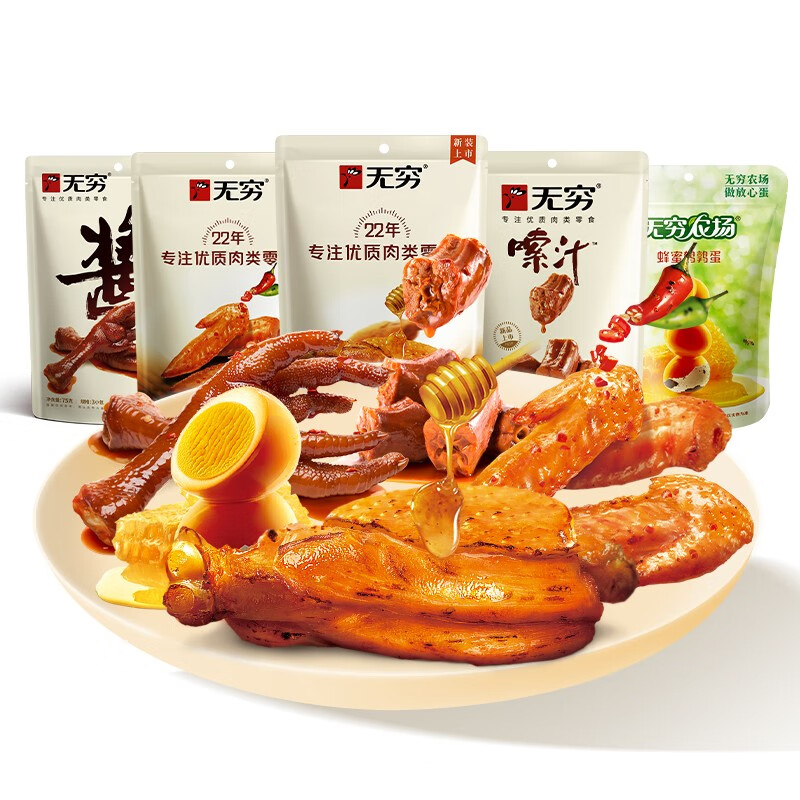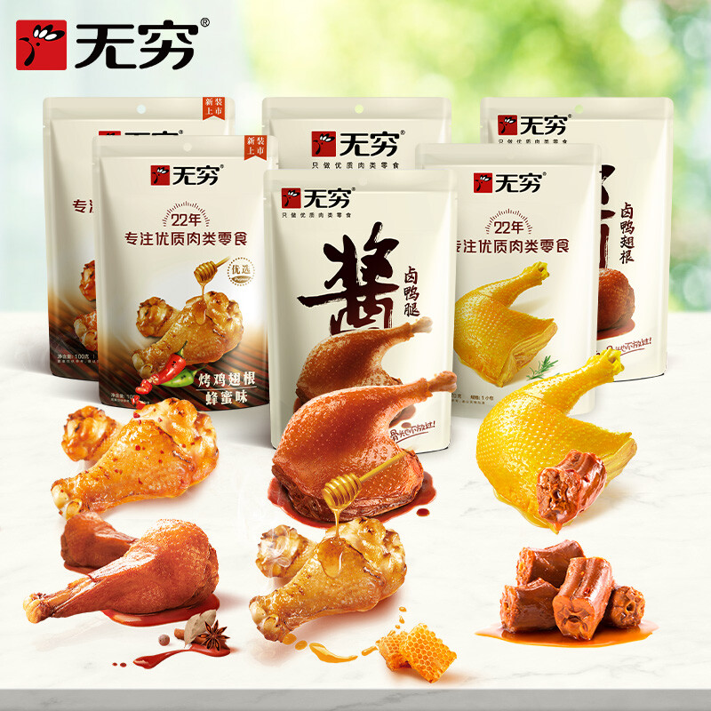 无穷盐焗鸡腿爱辣烤鸡爪小翅鸡米鸡蛋酱卤鸭翅根鸡肉零食整盒装