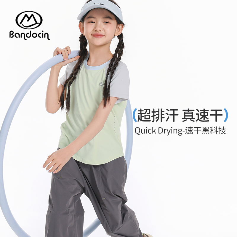 半度闲女童速干衣夏季薄款短袖t恤洋气2025新款儿童运动透气上衣T