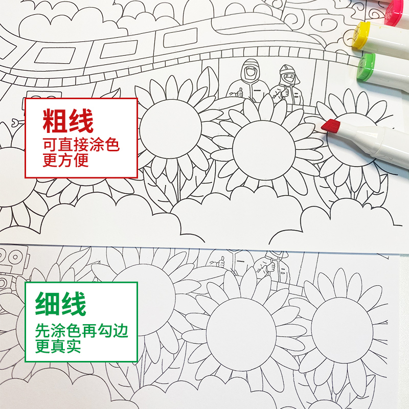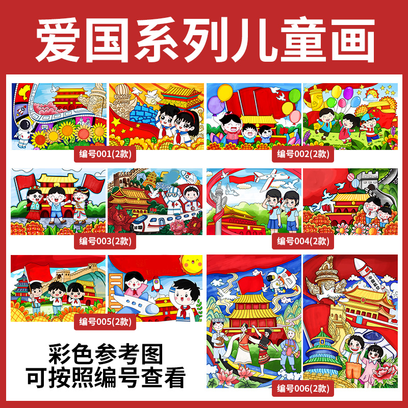 国庆节儿童画涂色手抄报幼儿黑白线稿4k半成品8kA4爱国模板童心向