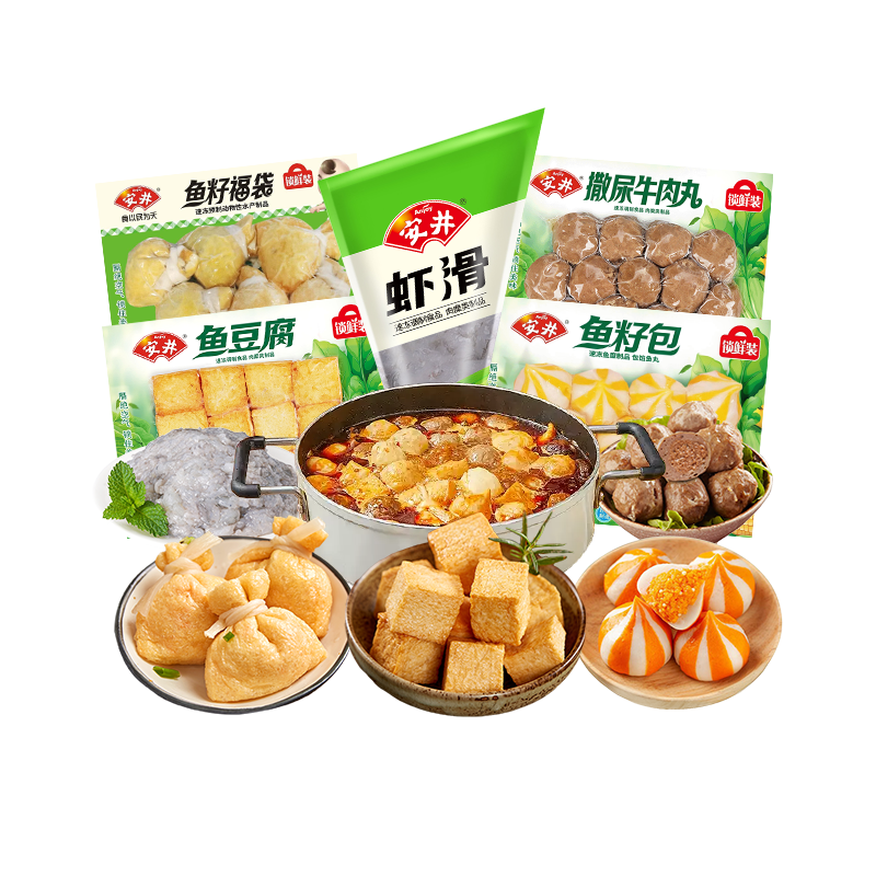安井锁鲜装火锅丸子撒尿牛肉丸鱼豆腐鱼籽福袋鱼籽包虾滑火锅食材