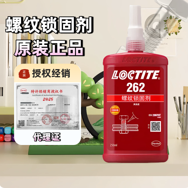 汉高乐泰262胶水螺纹锁固胶中等高强度触变型Loctite红色抗油污紫外线下发荧光以便监视适用于所有金属紧固件