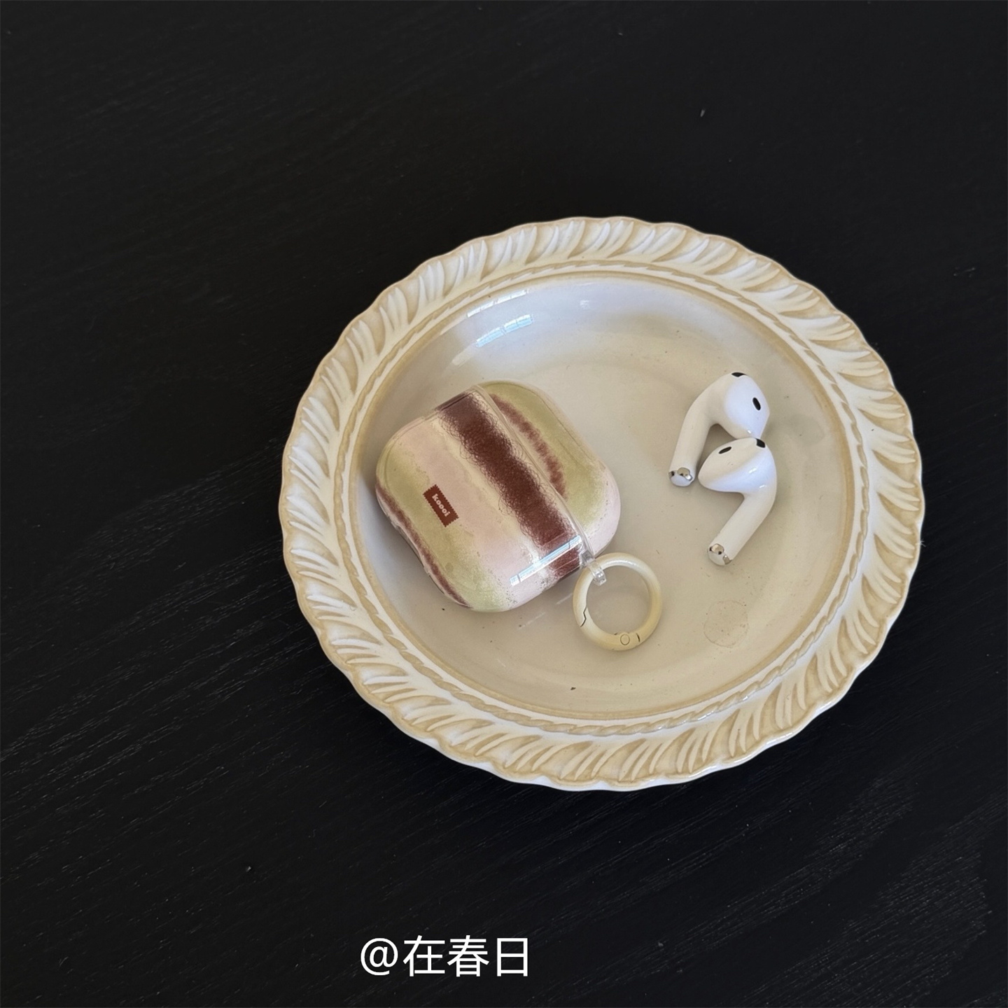在春日韩系ins小清新棕绿条纹耳机壳适用AirPods pro1/2代无线蓝牙保护壳苹果pro3代防摔女生新款4代软2代