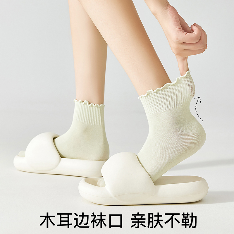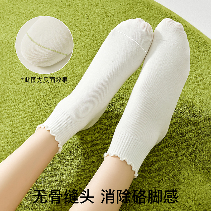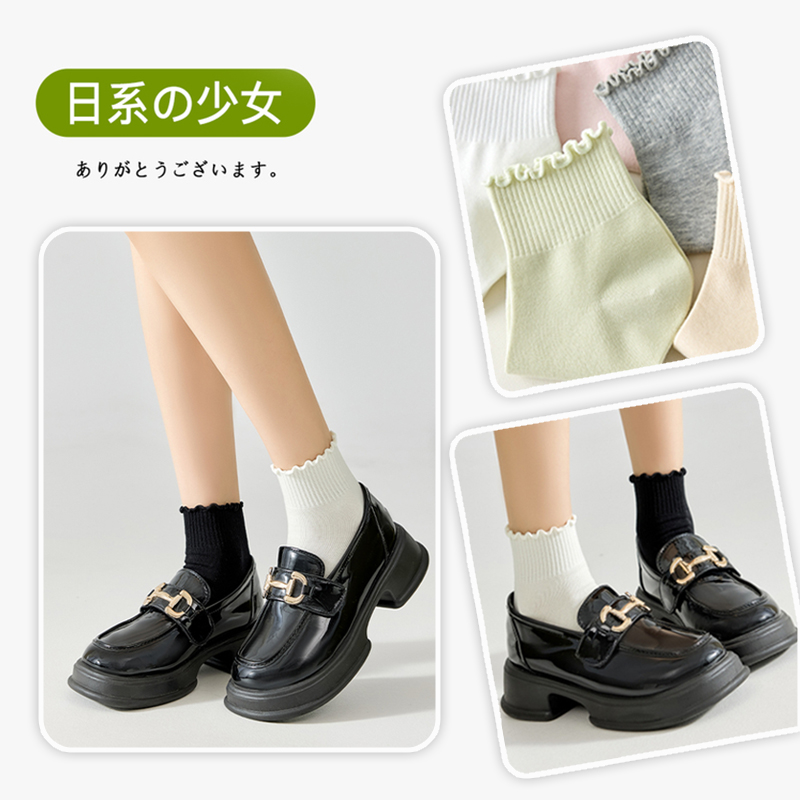 木耳边袜子女纯棉无骨短袜春秋款学生吸汗中筒袜搭配小皮鞋全棉袜