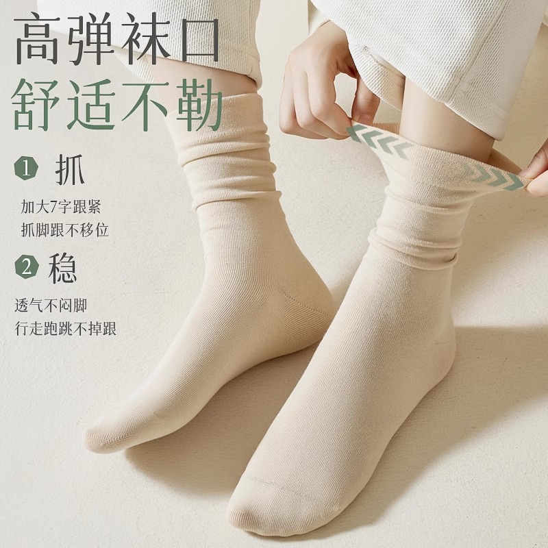 袜子女款纯棉中筒袜秋冬季抗菌防臭吸汗运动棉袜春秋款无骨短筒袜