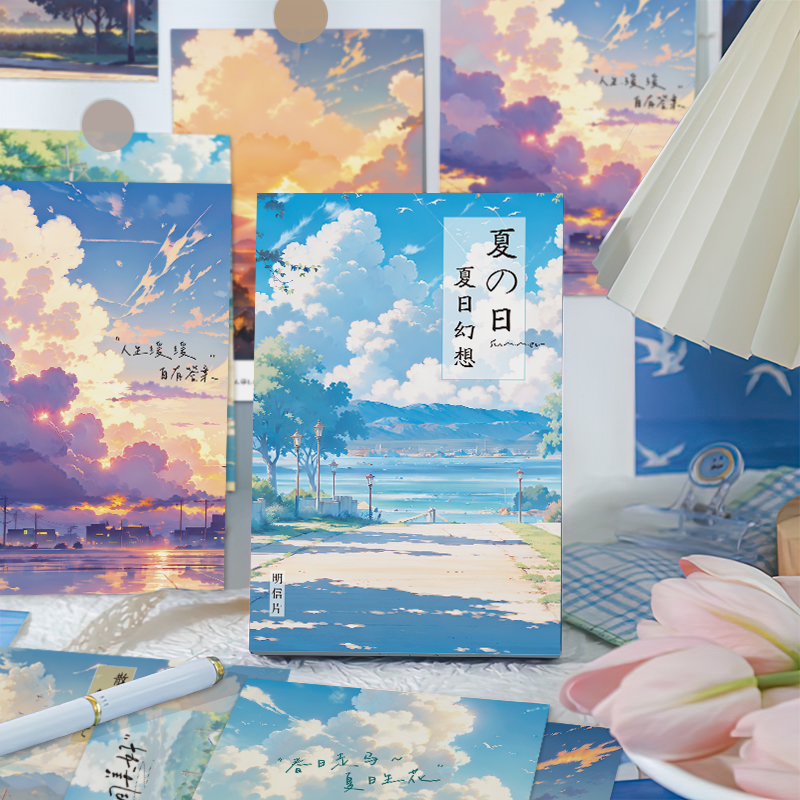 撞进夏日的气息里文艺高端贺卡礼物风景原创插画手绘明信片卡片寝室房间背景装饰贴画开学