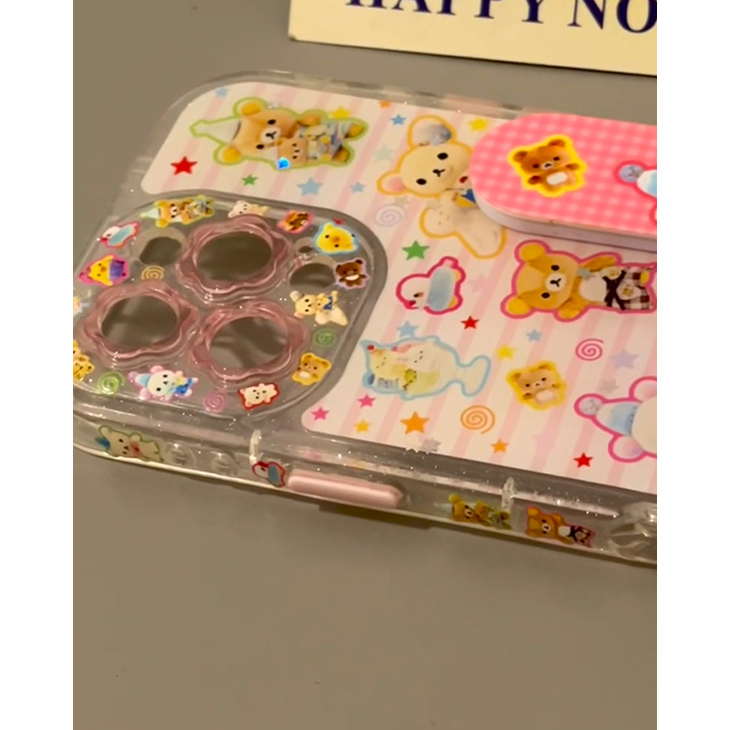 欧略 创意卡通花朵镜头轻松熊适用苹果16promax手机壳iPhone15女新款16带支架14小众13防摔保护套16pro超好看