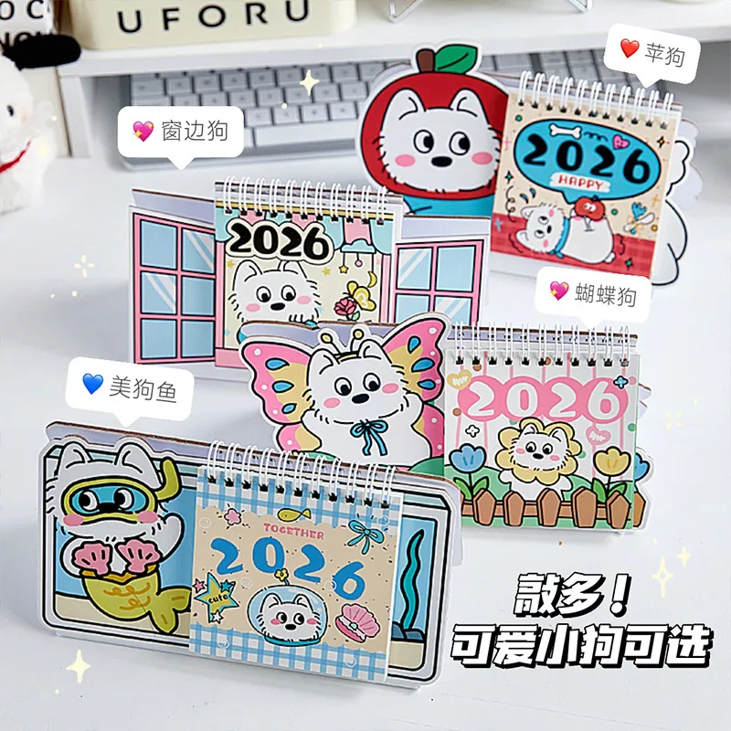 2026幸运小狗台历 ins风小狗日历桌面小摆件创意自律计划打卡好物