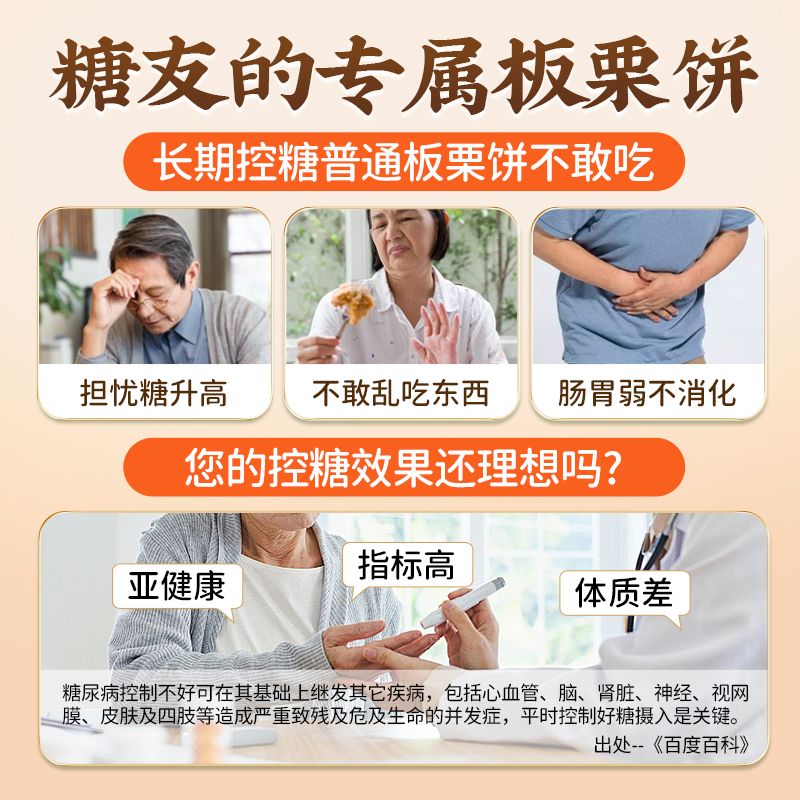糖尿病人专用无糖精板栗酥饼食品零食三血糖高糖友控糖