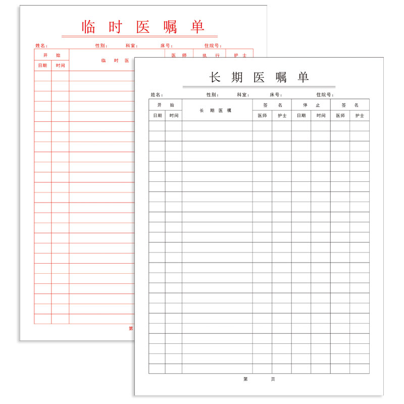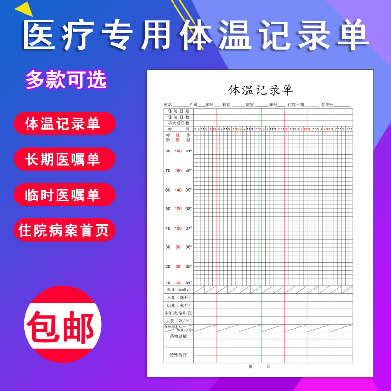 通用医院体温单定制长期医嘱临时医嘱单住院病案首页三测单定制做
