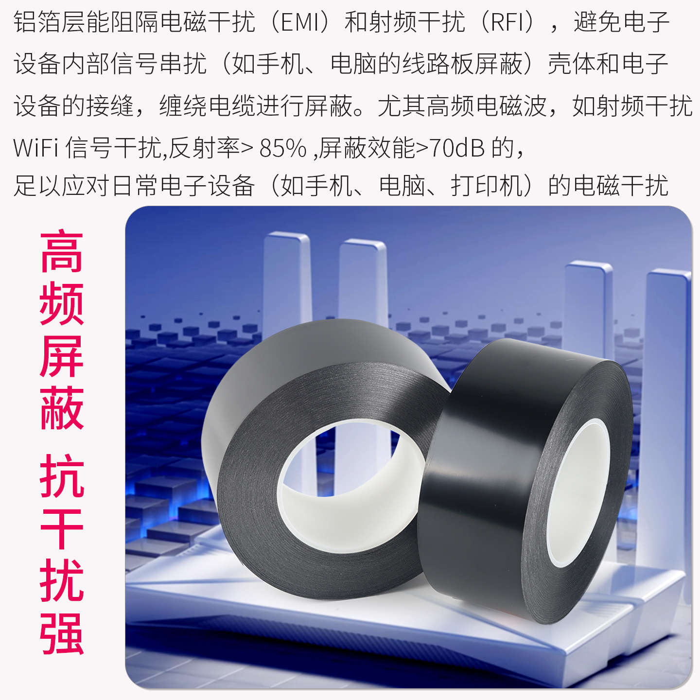 双面绝缘屏蔽铝箔胶带高温麦拉消除电磁屏蔽抗干扰绝缘屏蔽膜0.2
