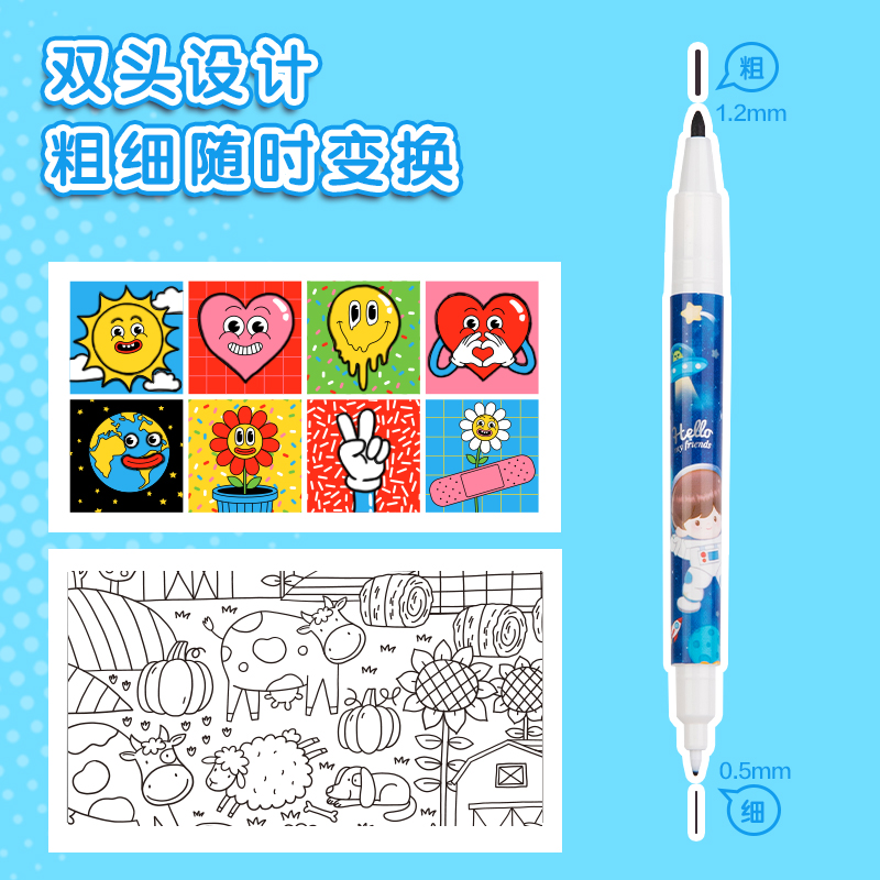 双头记号笔勾线笔美术专用小学生绘画黑色油性粗细两头儿童幼儿园马克笔描边速干防水防油不掉色工地划线