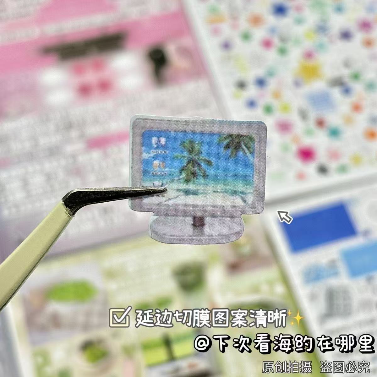 送镊子)造景贴纸微缩场景合集本贴纸本立体换装贴纸女孩儿童diy防水贴画亲子小游戏解压小屋玩具装饰小图案