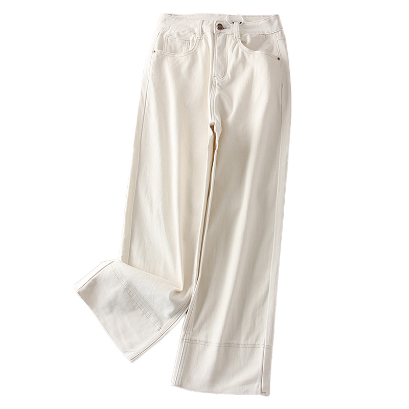 李李服饰米白色双扣丰胯微喇牛仔裤女2025秋季新款弹力显瘦长裤子