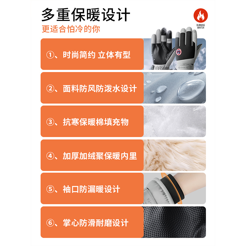 冬季滑雪手套触屏摩托车加绒保暖加厚骑行防水防风寒防滑户外防雨