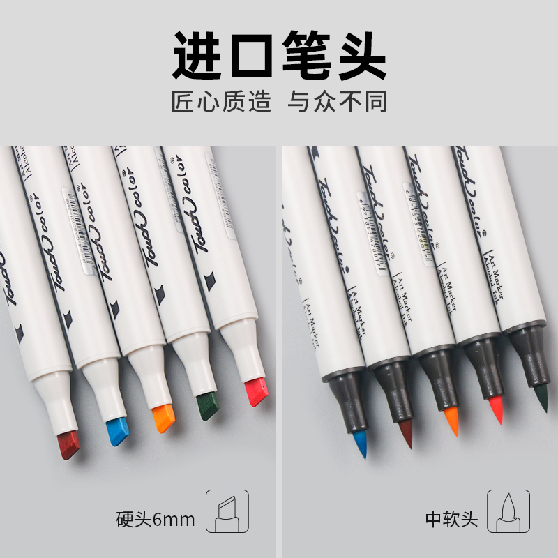touch color三角杆软头马克笔学生动漫套装美术生初学者专业绘画笔双头酒精油性手绘笔24/36/80/120色全套
