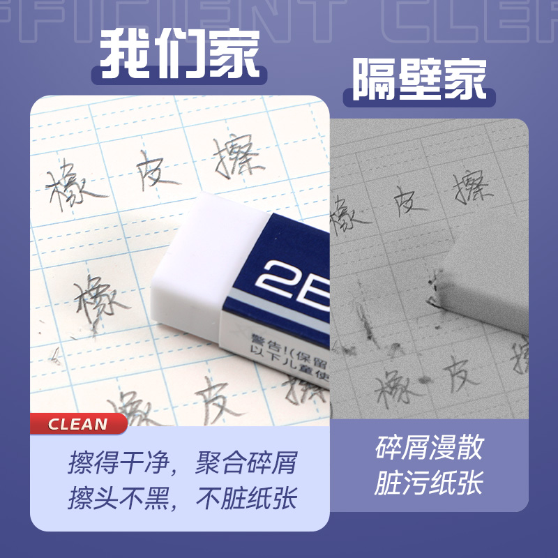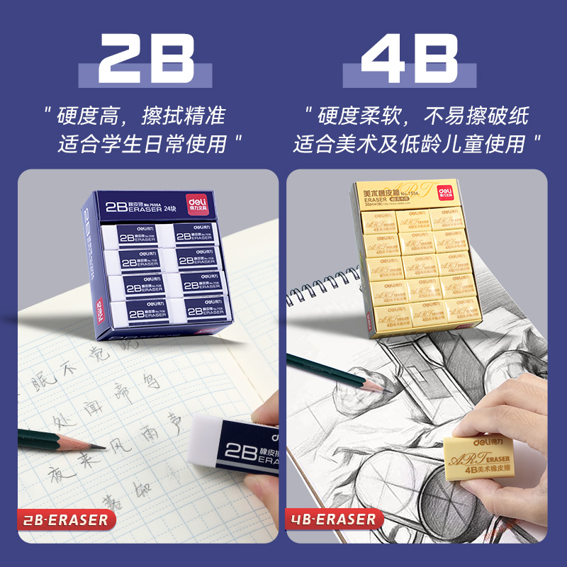 得力橡皮檫小学生专用无屑不留痕像皮擦的干净儿童幼儿园美术生绘图考试专用不伤纸2B象皮擦字成线无碎屑
