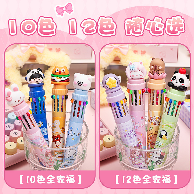 多功能按动多色合一圆珠笔小学生卡通做笔记标记用手账彩色