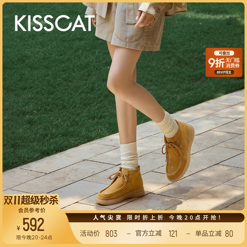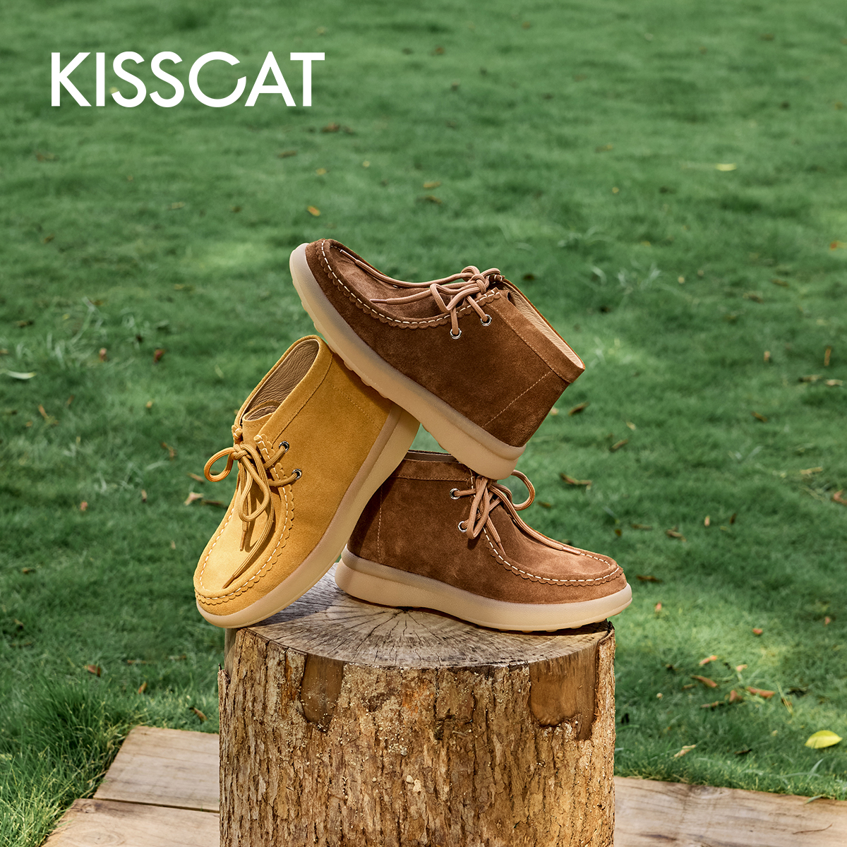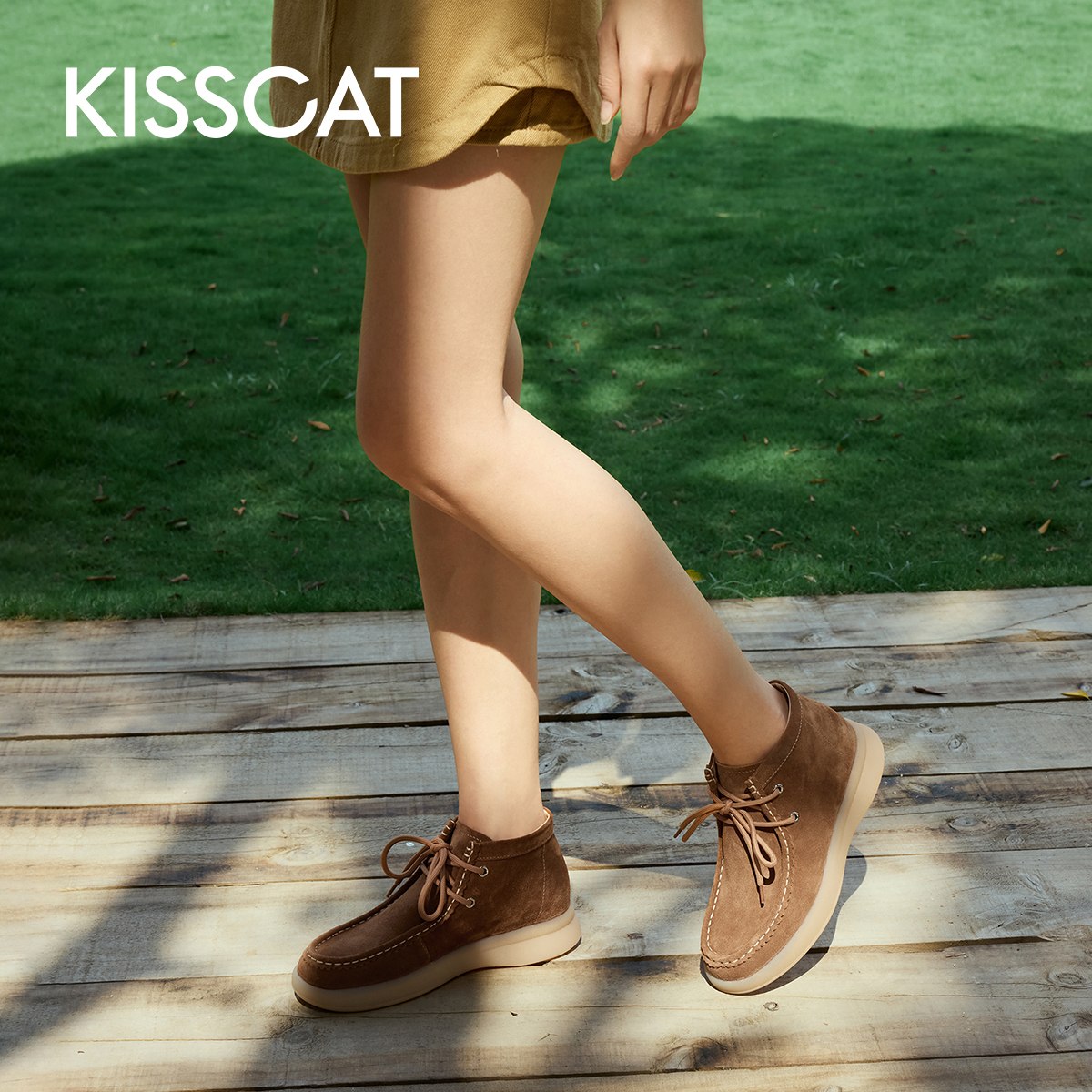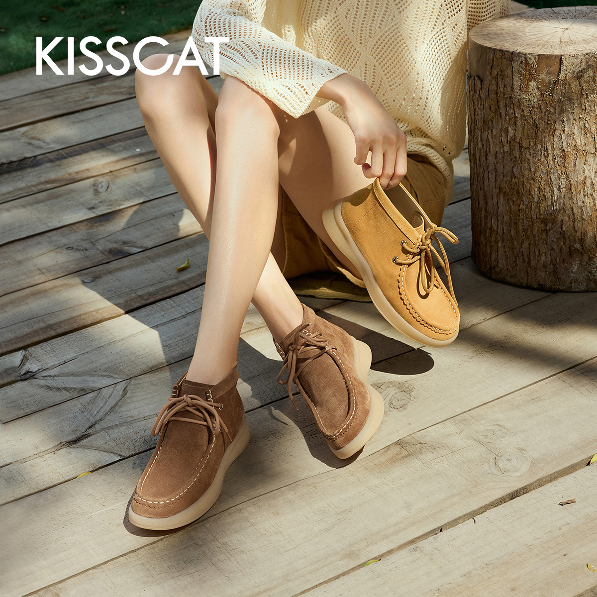 KISSCAT接吻猫[松弛假日]25新款休闲鞋真皮大黄靴高帮袋鼠鞋女