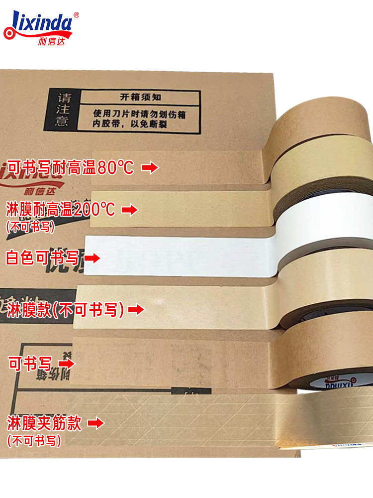 牛皮纸胶带封箱免水可书写高粘强力可手撕裱画框相框专用免水黄色纸质降解胶纸整箱批发50米大卷封口胶耐高温