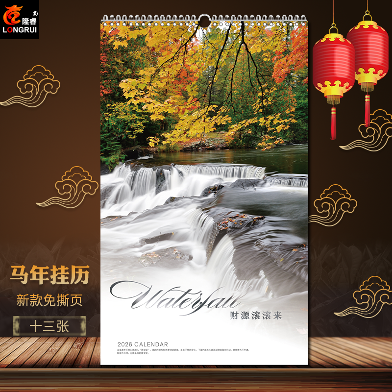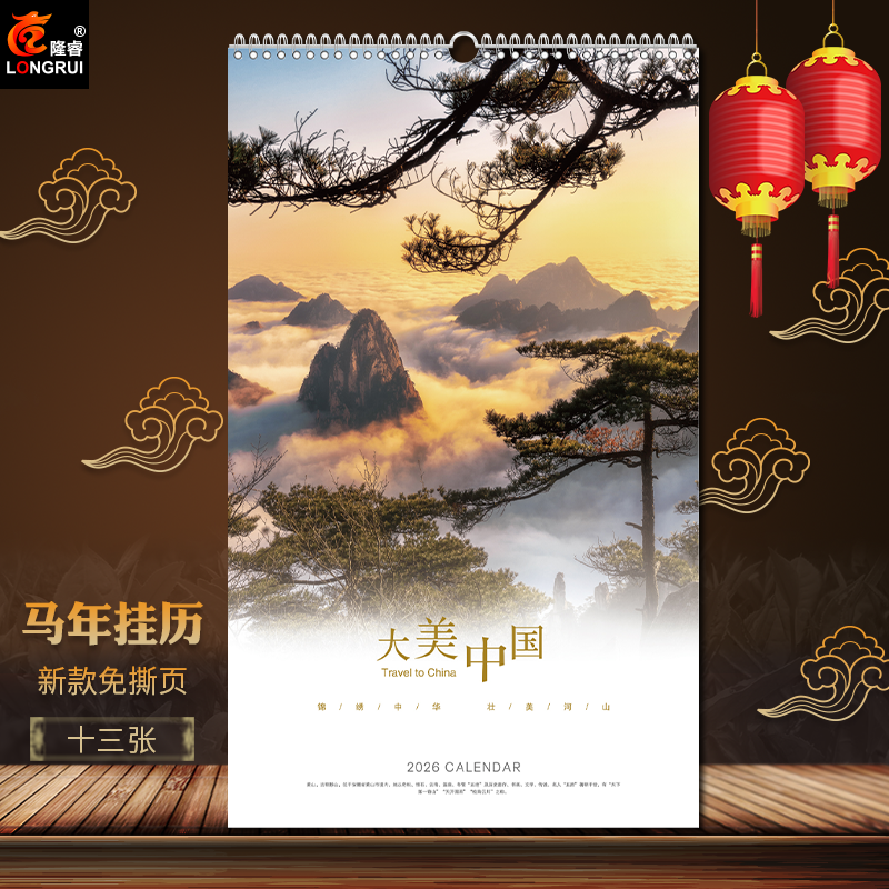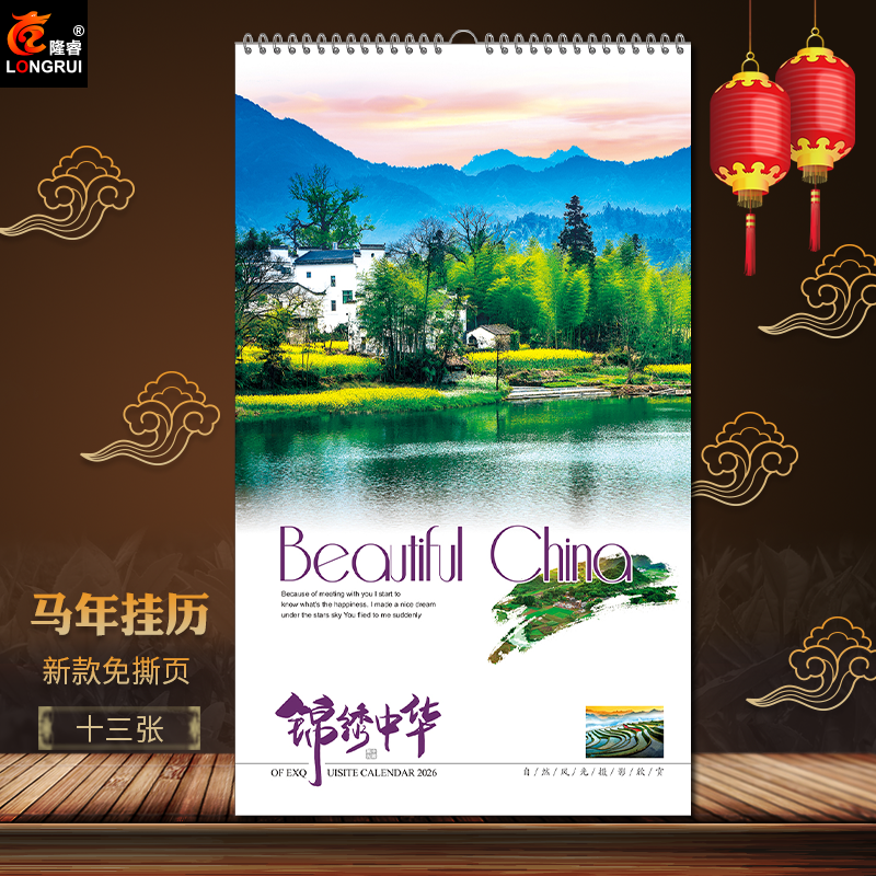 2026年马年挂历创意家用挂墙月历新款免撕页印刷订制公司礼品大号ins风油画梵高莫奈线圈装订中国风景画13张