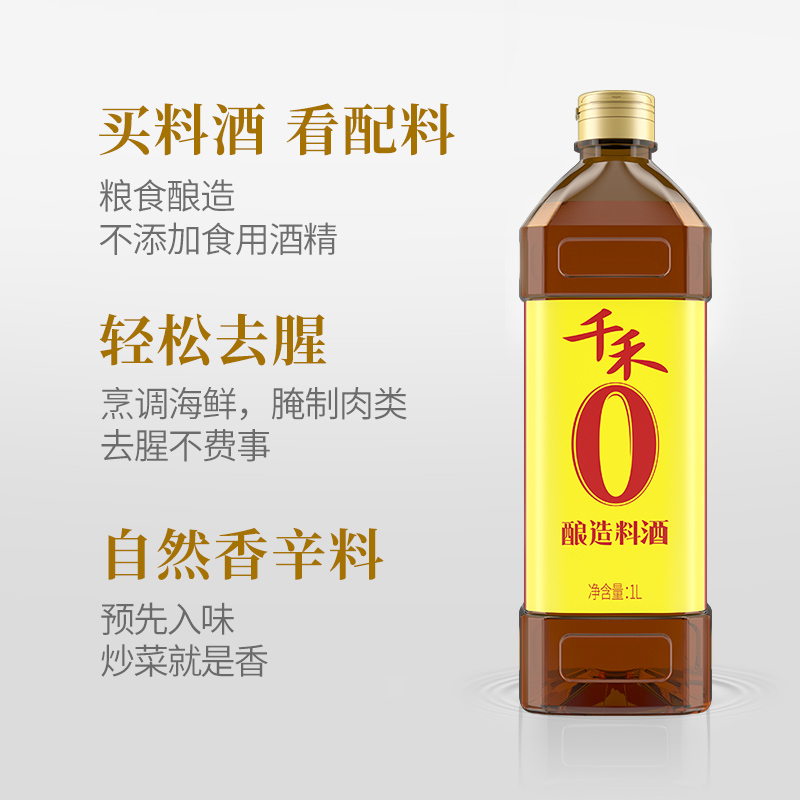 千禾零添加酿造料酒1L去腥解膻增鲜提味厨房烹饪炒菜家用调味品