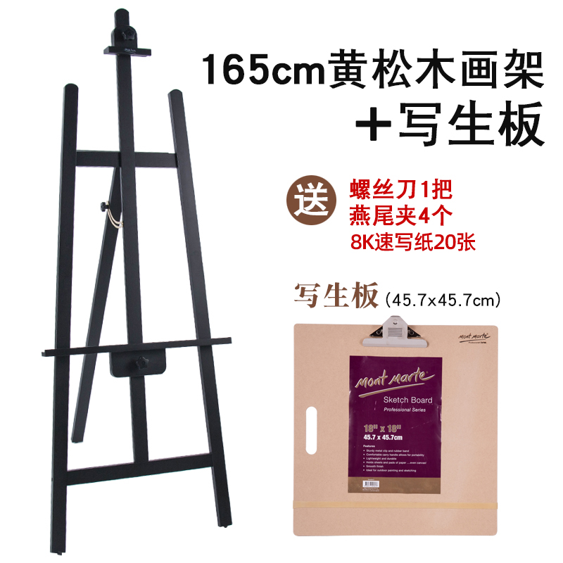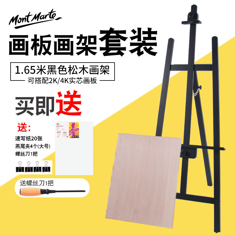 蒙玛特 画架木制支架式素描画板画架套装后撑式三角黑色木制油画