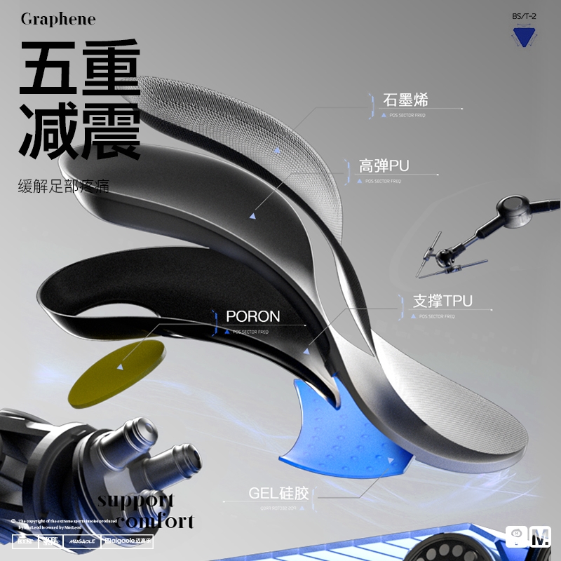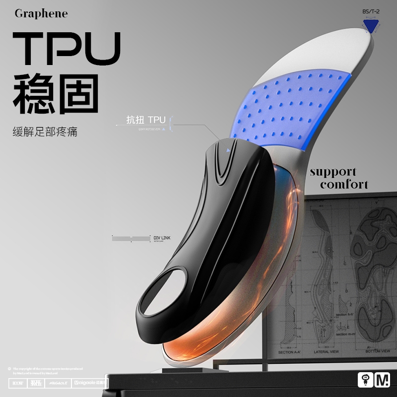 迈高乐石墨烯足弓支撑鞋垫男扁平足矫正防脚痛专业运动减震矫形器