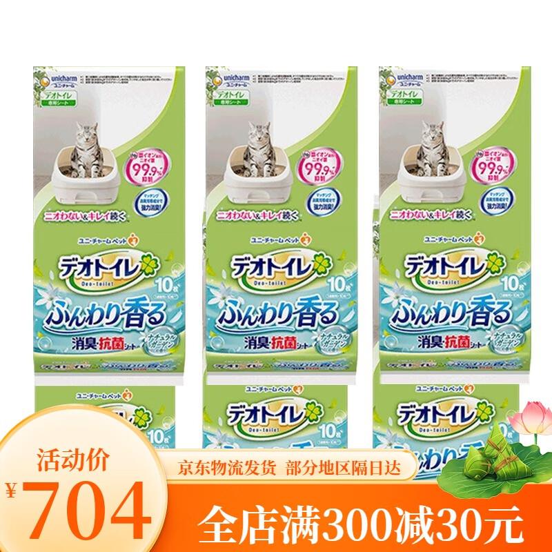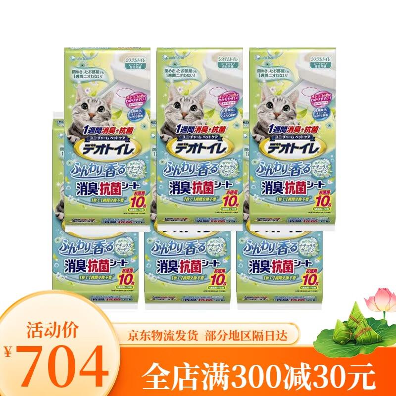 日本进口佳乐滋加香猫尿垫6包吸水除臭加厚猫砂盆尿片60片 清新庭