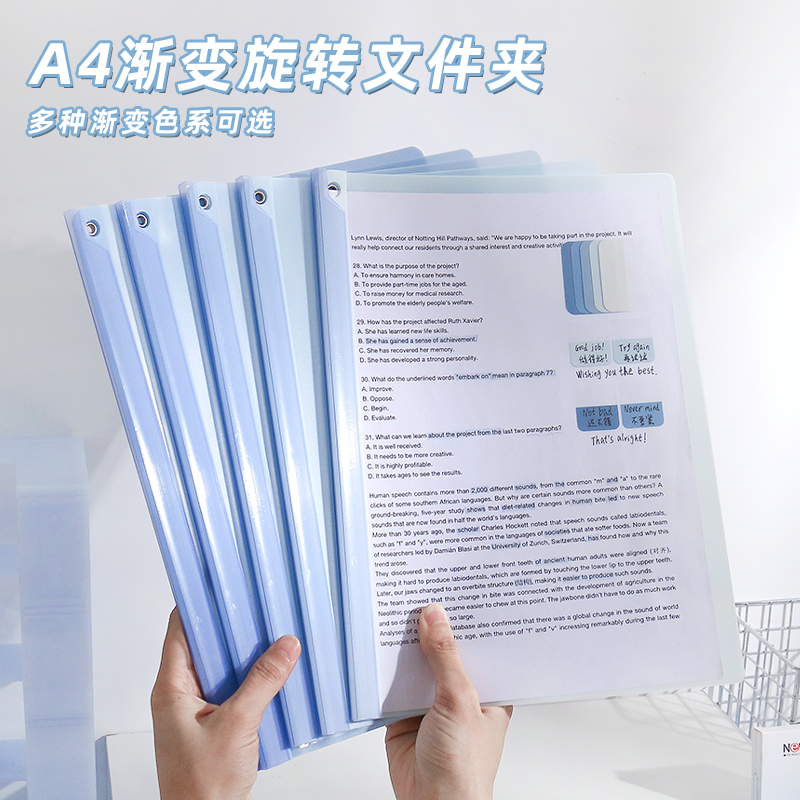渐变色旋转拉杆夹a4透明文件夹侧开式试卷夹学生抽杆夹收纳档案夹
