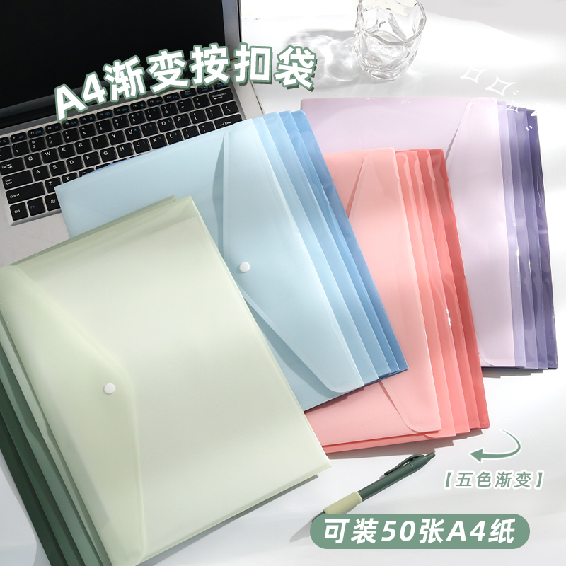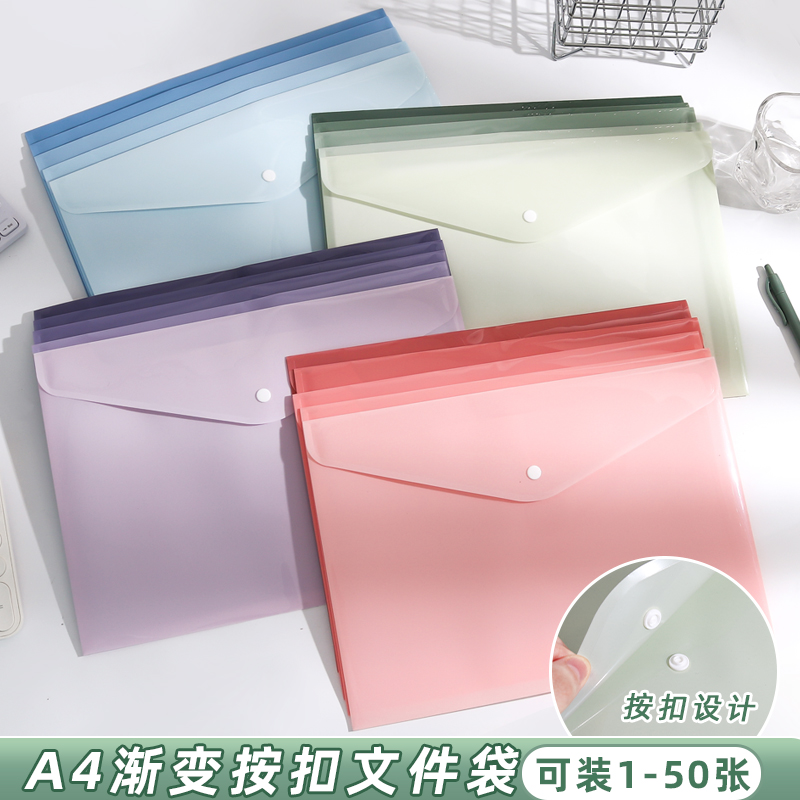 渐变色A4文件袋按扣学生用加厚大容量试卷收纳袋资料档案袋纽扣袋