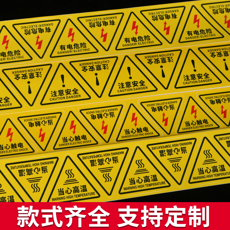 当心机械伤人标识牌注意机器高温伤手夹手提示贴小心有电触电危险安全警示牌工厂车间告知警告牌标识贴纸标签